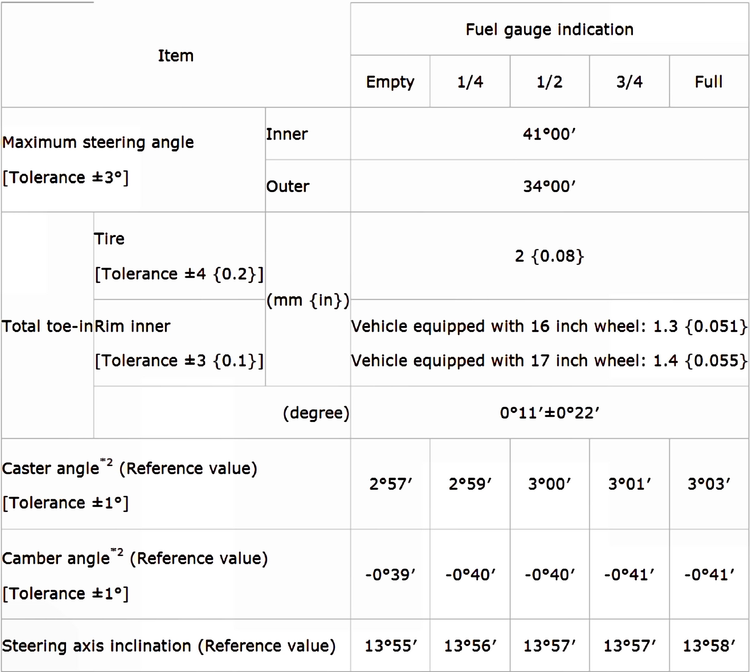 Wheel Alignment Specifications (Unloaded)*1