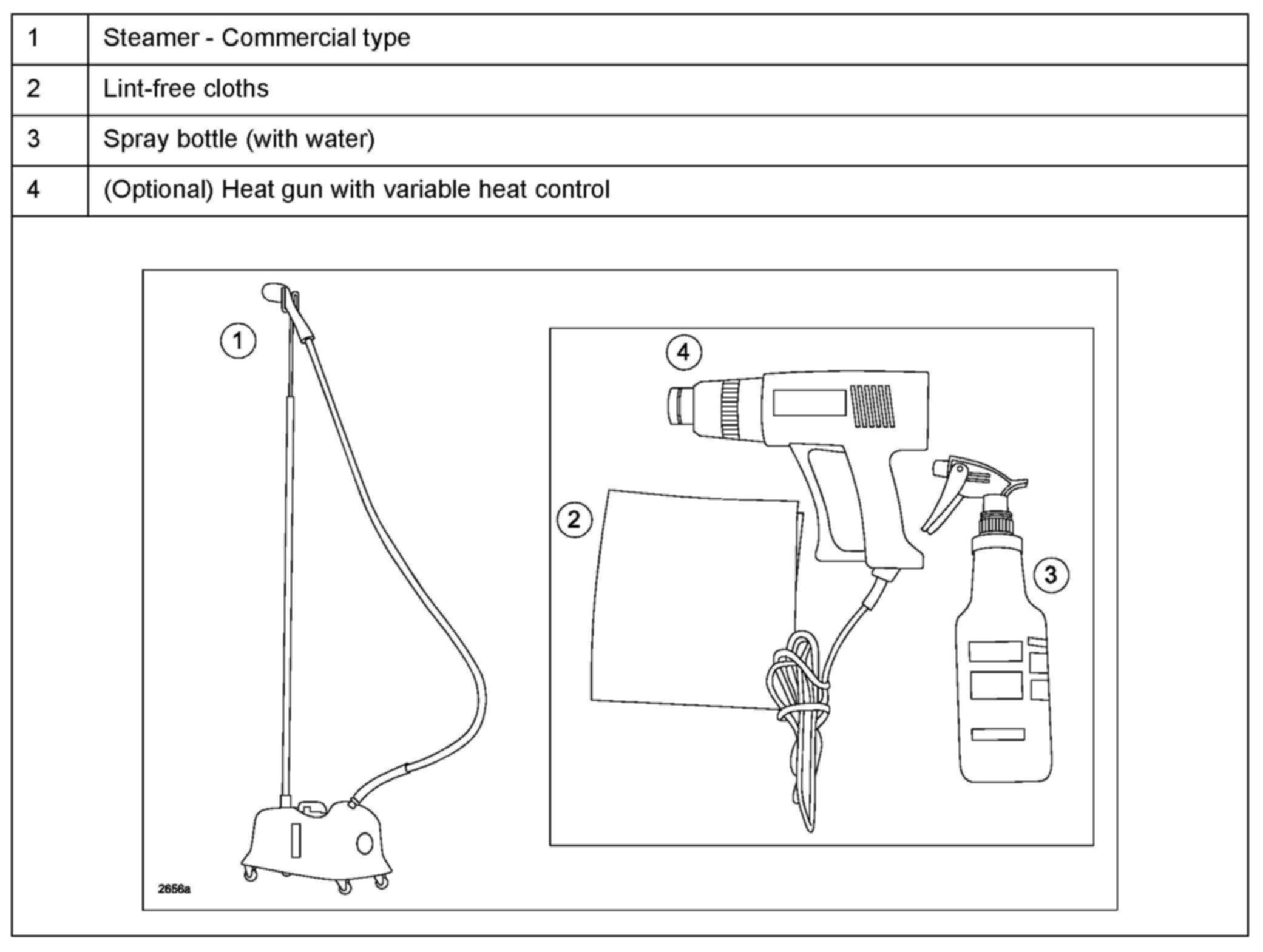 Direct heat may be necessary to aid in the removal of some wrinkles. Refer to HEAT GUN METHOD.