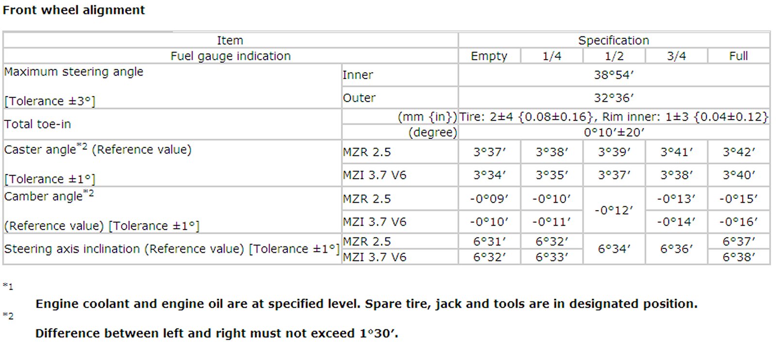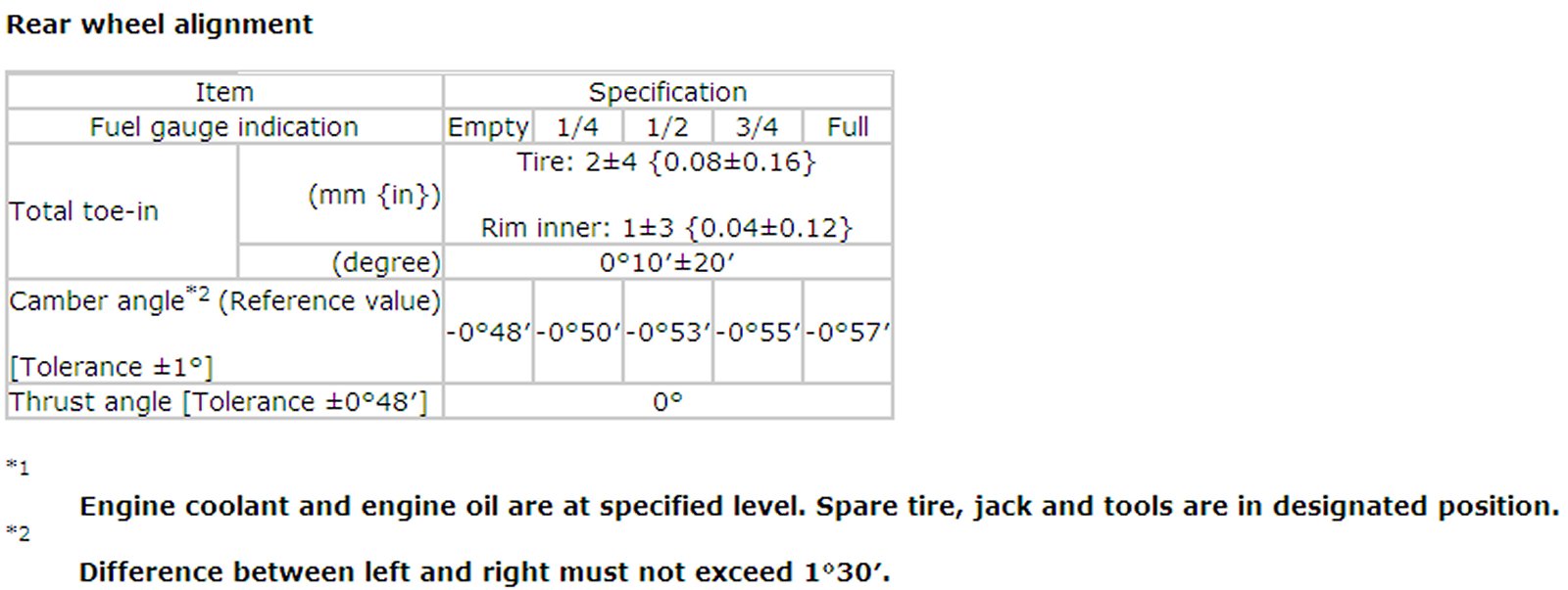 Wheel Alignment Specifications