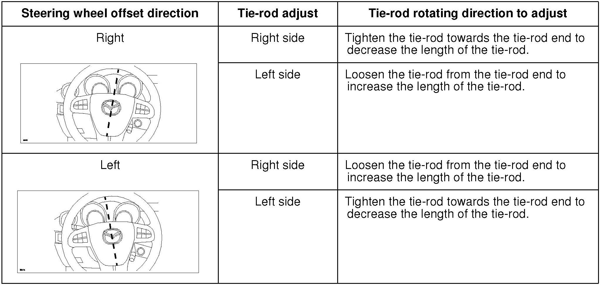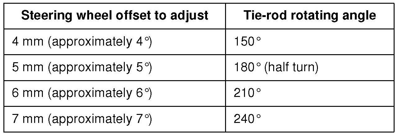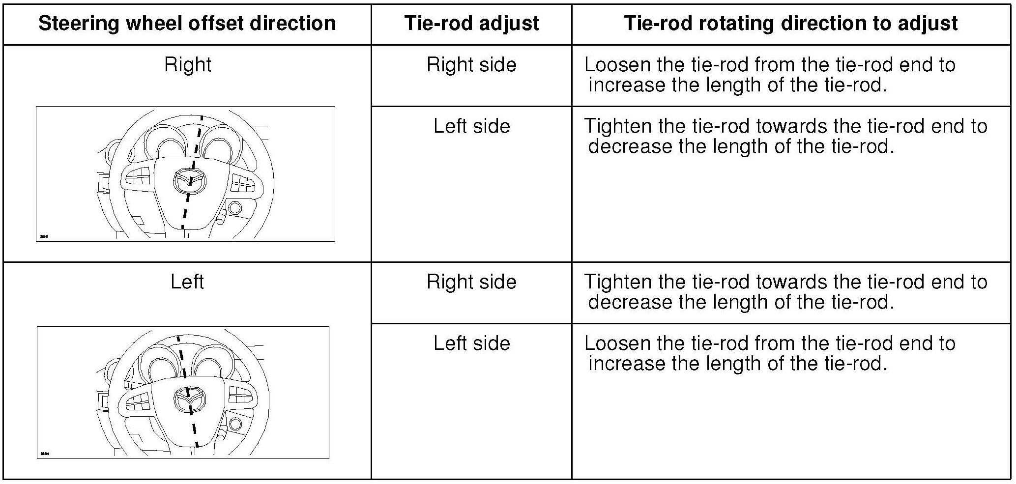 3. Rotate the tie-rod to adjust the steering wheel center. Refer to the following charts for rotating direction.