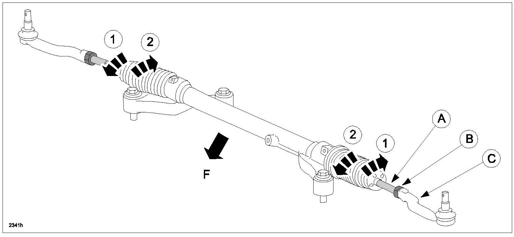 2: Turn in this direction to tighten the tie rod towards the tie-rod end and decrease the length.
