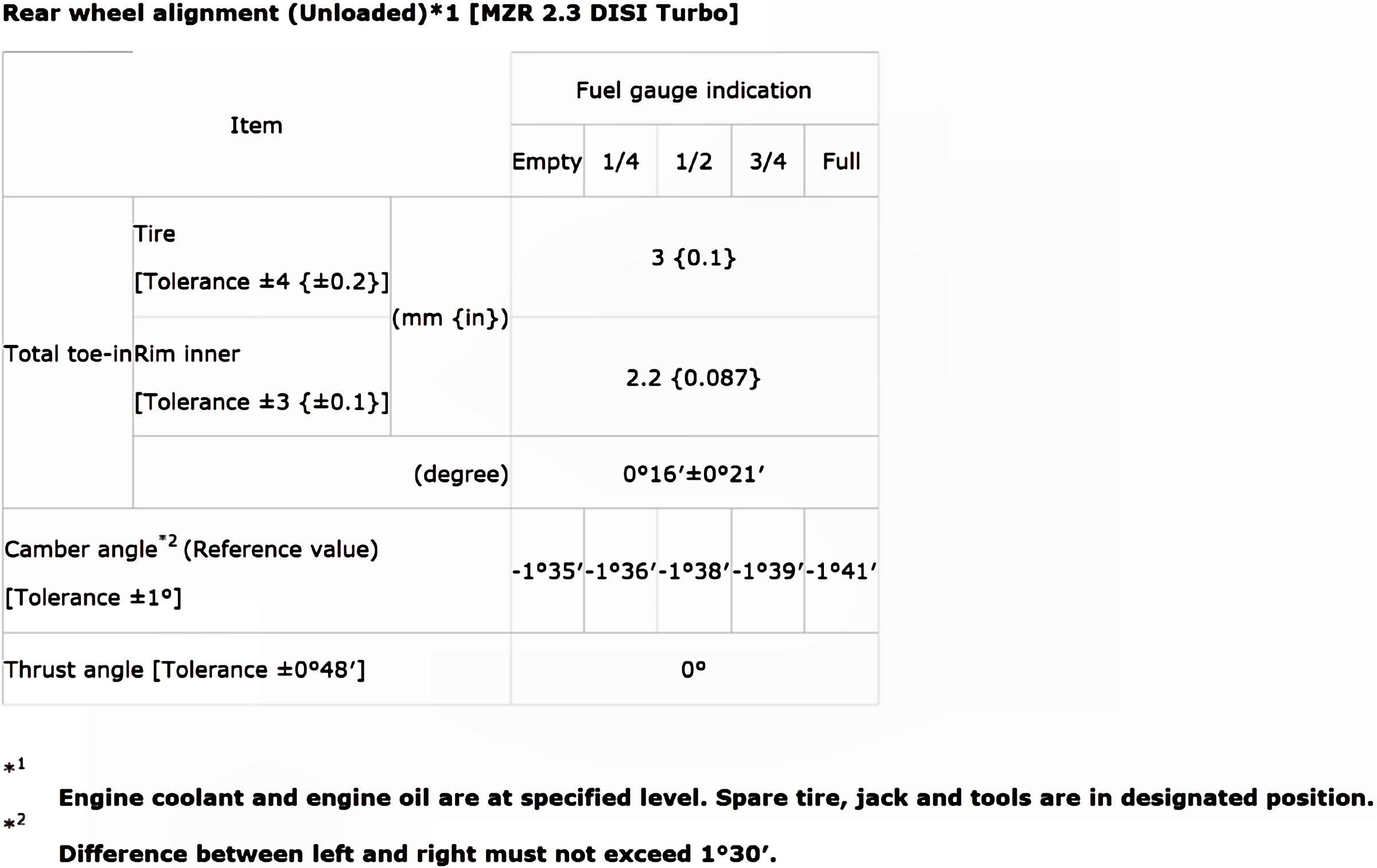 Wheel Alignment Specifications