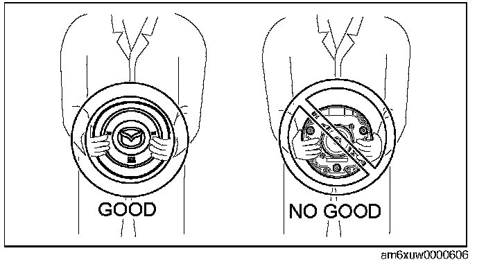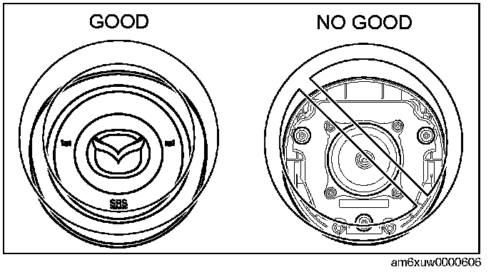 - Before removing the air bag module or disconnecting the air bag module connector, always switch the ignition off, disconnect the negative battery cable, and then wait for 1 min or more to allow the backup power supply of the SAS control module to deplete its stored power.