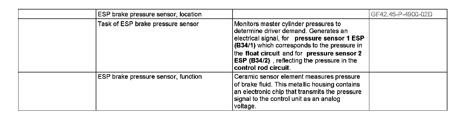 GF42.45-P-4900B ESP brake pressure sensor, location task function