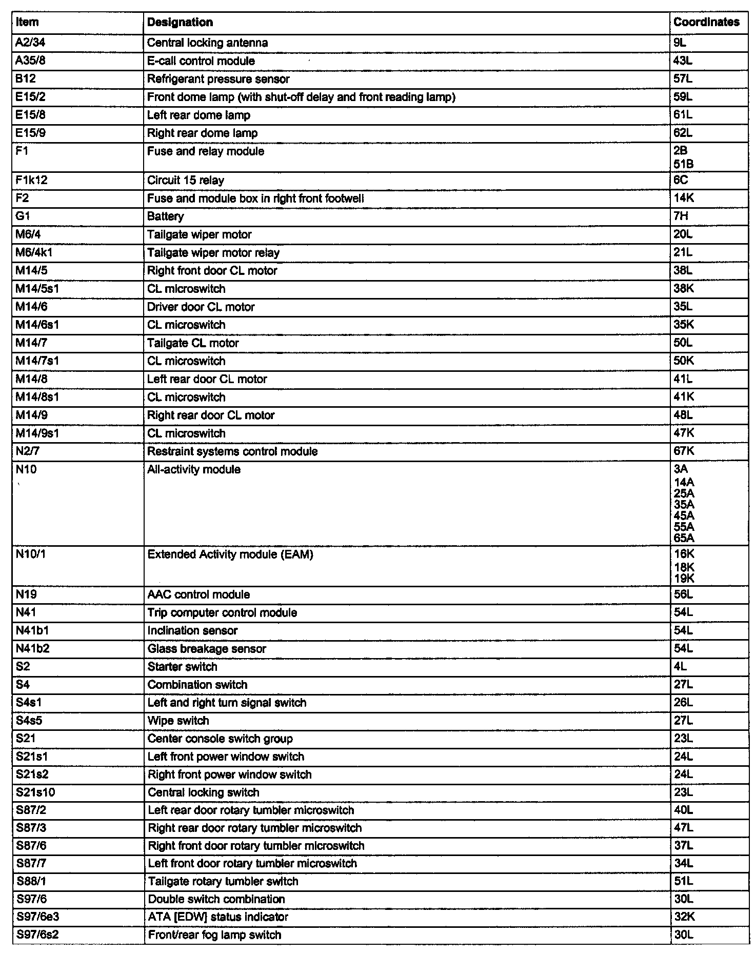 Component Description/Coordinates, A2/34 - S97/6s2: