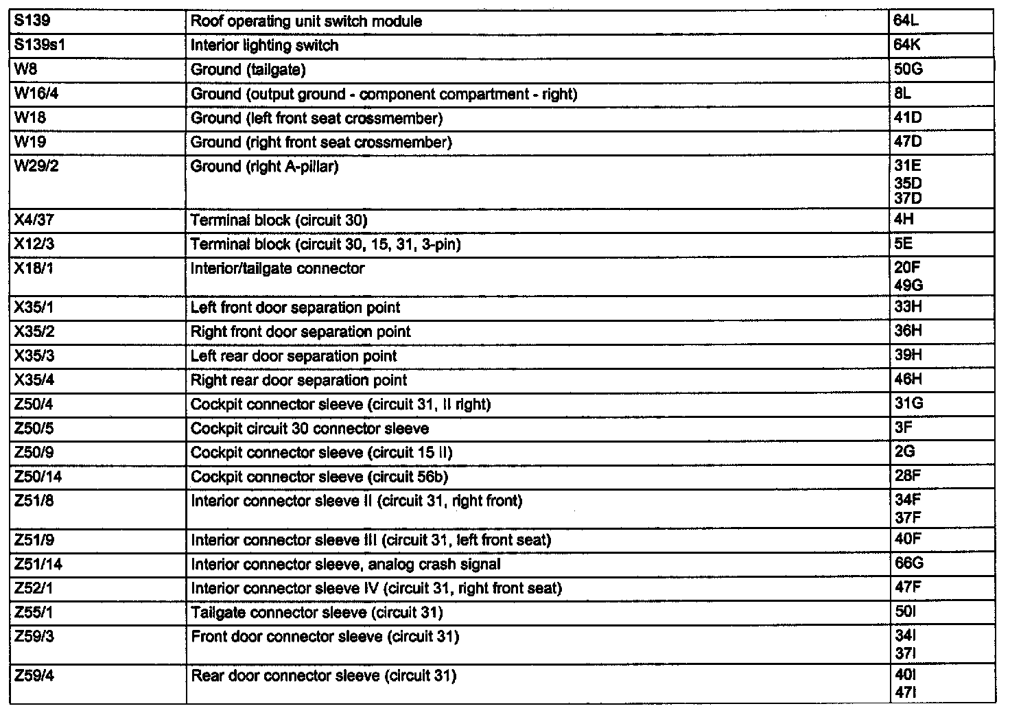 Component Description/Coordinates, S139 - Z59/4: