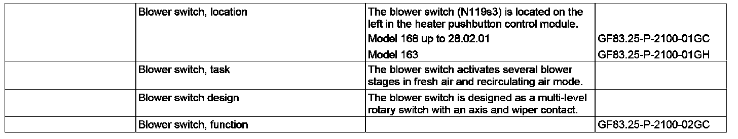 GF83.25-P-2100GC Blower Switch, Location/Task/Design/Function