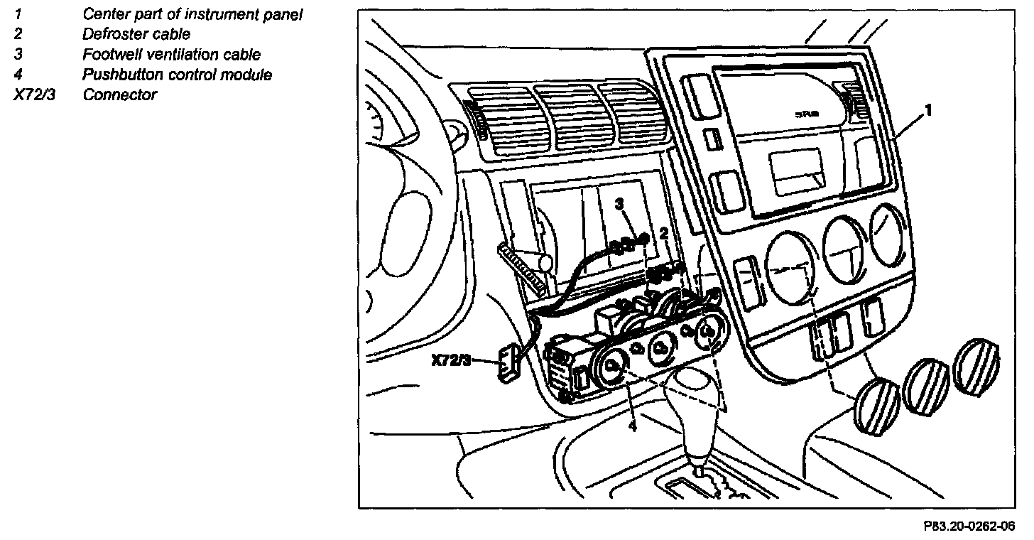 5 Disconnect connector (X72/3) at heater/AC controls (4)