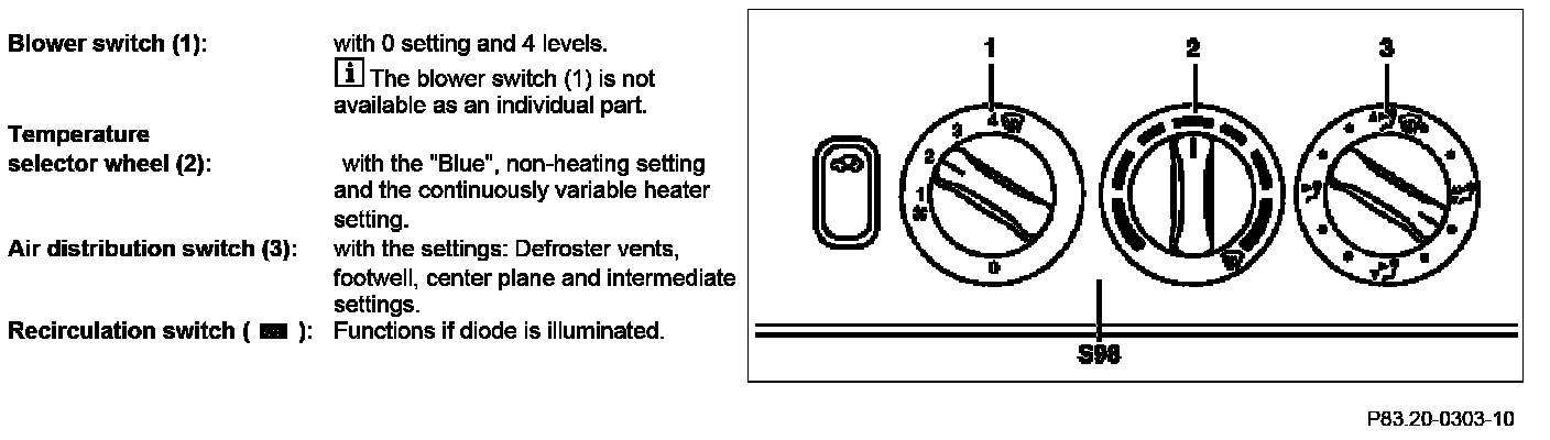 The following components are integrated into the heater control unit (S98):