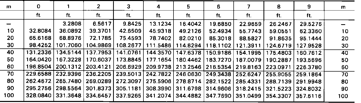 Fig. 5 Conversion Table, Meters To Feet: