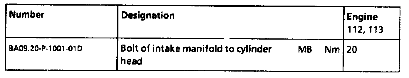Engine mounts, engine supports tightening specifications