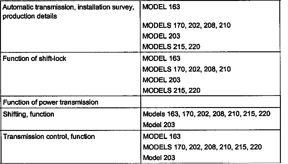 Automatic transmission 722.6 is an electronically controlled 5speed transmission with a lockup clutch in the torque converter. The ratios for the gears are realized by three planetary gear sets. The 5th gear is designed with a step-up ratio as an overdrive. Shifting is initiated electronically. The gears are shifted by the corresponding combination of three hydraulically actuated multiplate brakes, three hydraulically actuated multi-disc clutches and two mechanical freewheels.