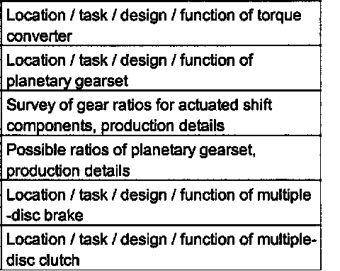 The ring gear (V4) is driven by the propeller shaft (1). The sun gear (V1) is held against the housing by the locked freewheel F1 during acceleration and via the engaged multiple-disc brake B1 during deceleration. The planet gears (V2) turn on the fixed sun gear (V1) and increase the torque from the ring gear (V4) to the planet carrier (V3). The planet carrier (V3) moves at a reduced speed in the running direction of the engine.
