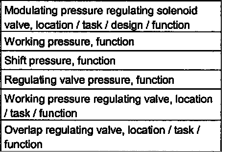 The modulating pressure influences the size of the working pressure and determines t6gether with the shift pressure the pressure regulated at the overlap regulating valve. The modulating pressure is regulated at the modulating pressure regulating solenoid valve (Y3/6y1), which is under regulating valve pressure. The modulating pressure is variable and relative to the engine load.
