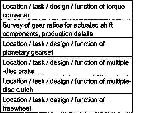 Torque from the torque converter is increased via the propeller shaft (1) and all three planetary gearsets and transferred with reversed direction of rotation to the output shaft (5).