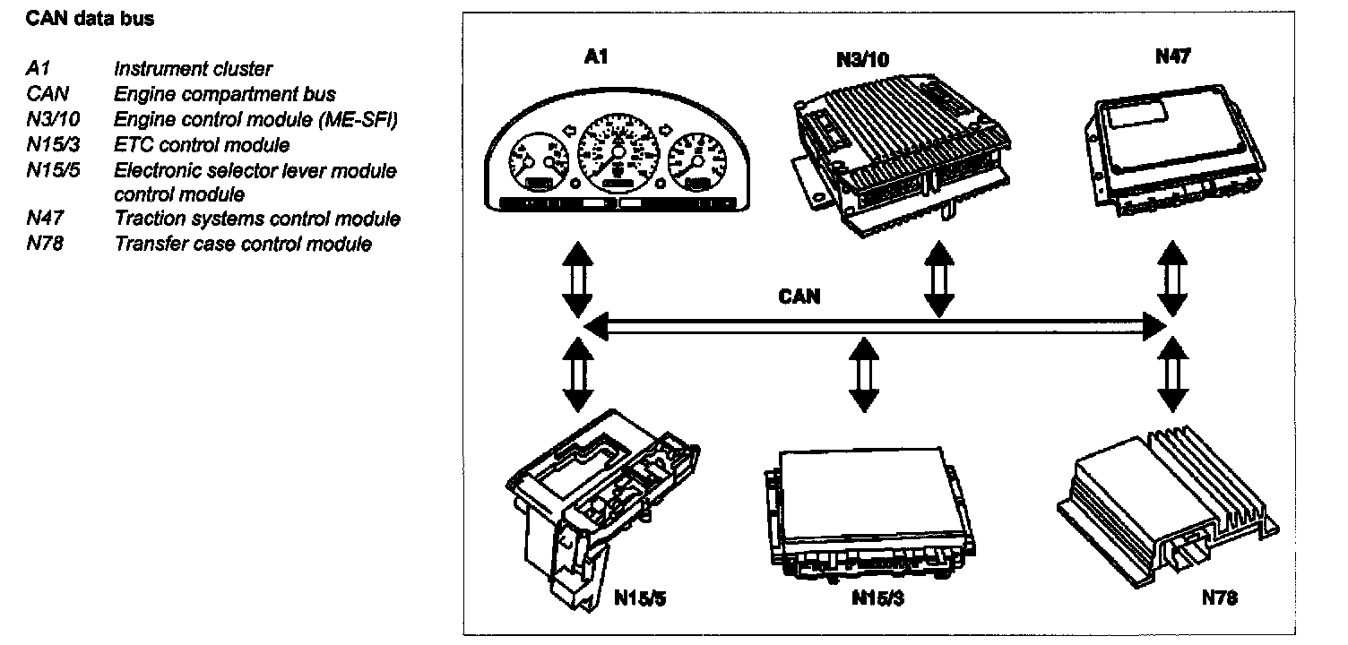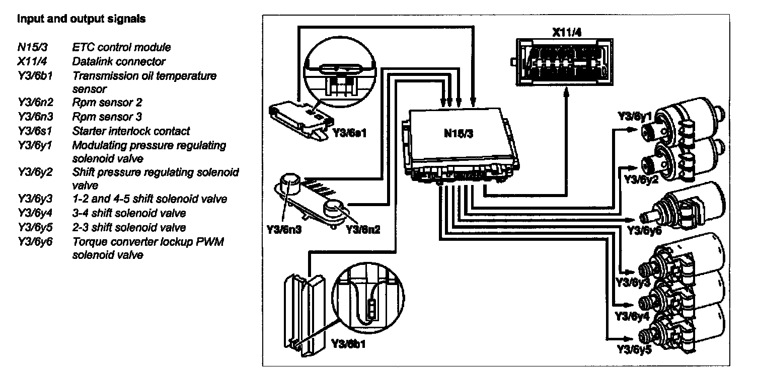 The ETC control module (N15/3) determines the instantaneous operating condition of the vehicle and controls all gearshift sequences taking into account the ease of shifting and the driving situation.