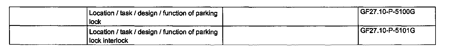 The locking pawl (39) of the parking lock is connected to the release lever (56) at the brake pedal by a link rod and a cable (54). It is also connected to the locking valve (60) in the adapter housing (63) via a cable (53). The locking valve (60) is blocked from the locking cam (61) in the steering lock (59).