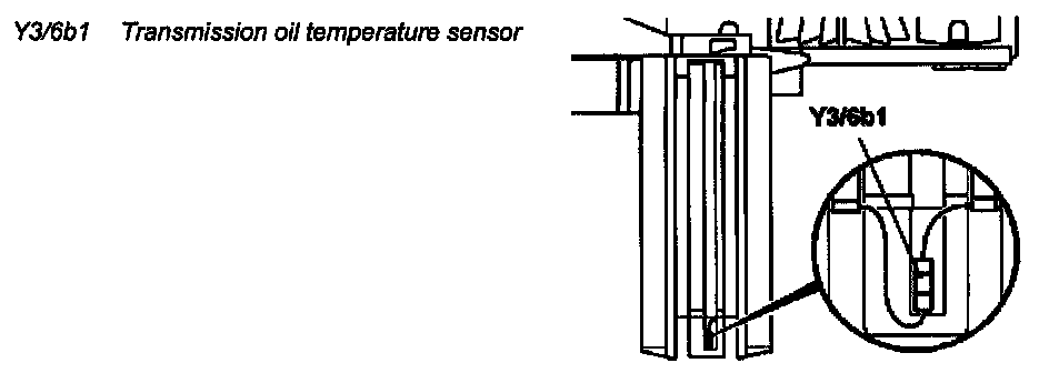 The temperature of the transmission oil has a considerable effect on the shifting time and therefore the shift quality. By measuring the oil temperature, shift operations can be optimized in all temperature ranges. The transmission oil temperature sensor (Y3/6b1) is switched in series with the starter interlock contact (Y3/6s1). The temperature signal is transferred to the ETC control module (N15/3) only when the dry-reed contact of the starter interlock contact (Y3/6s1) is closed.