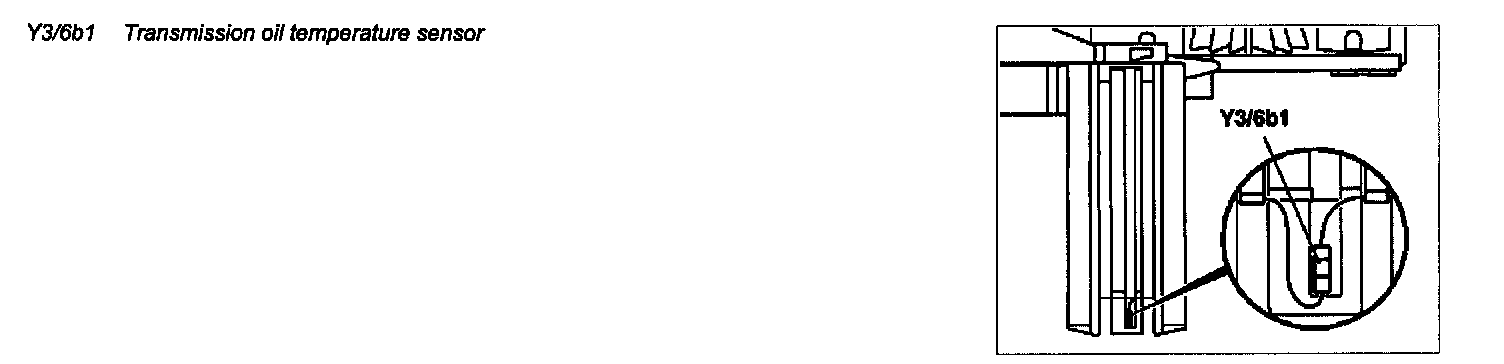 The temperature of the transmission oil has a considerable effect on the shifting time and therefore the shift quality. By measuring the oil temperature, shift operations can be optimized in all temperature ranges. The transmission oil temperature sensor (Y3/6b1) is switched in series with the starter interlock contact (Y3/6s1). The temperature signal is transferred to the ETC control module (N15/3) only when the dry-reed contact of the starter interlock contact (Y3/6s1) is closed.