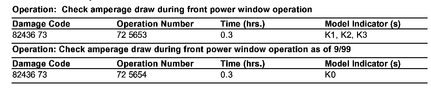 The observed maximum operating currents (raising and lowering) MUST be included in the dealer text field of every warranty claim in which the center console switch group was replaced. Such warranty claims will be reviewed and absence of this information will cause the claim to be rejected.