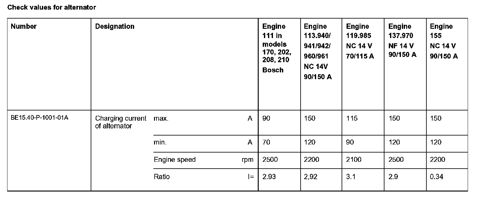 BE15.40-P-1000-01A Check Values For Alternator