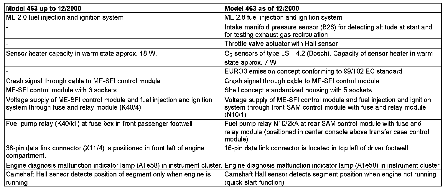 Differences between model 463 up to 12/2000 and model 463 as of 12/2000 with engine 112.945 and 113.962