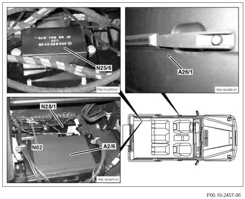 Control units in the area of trunk as well as driver door