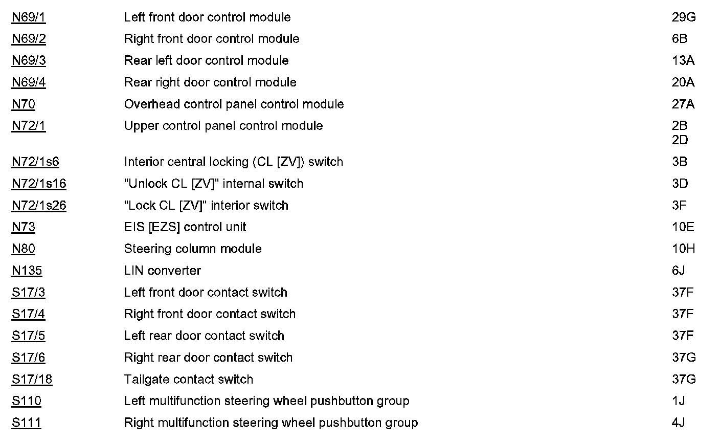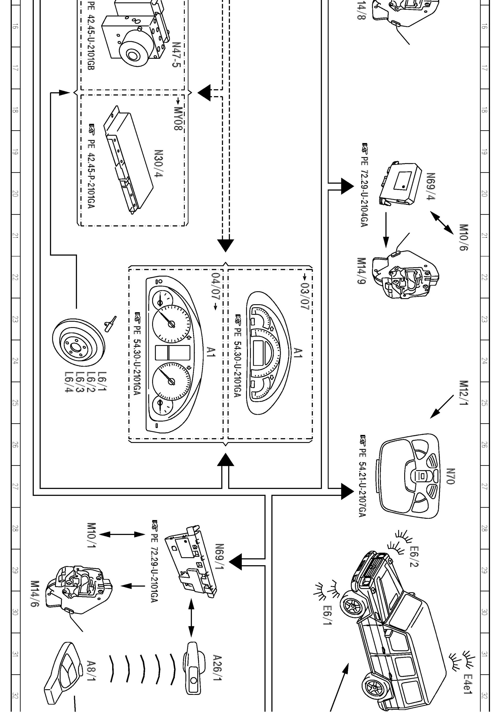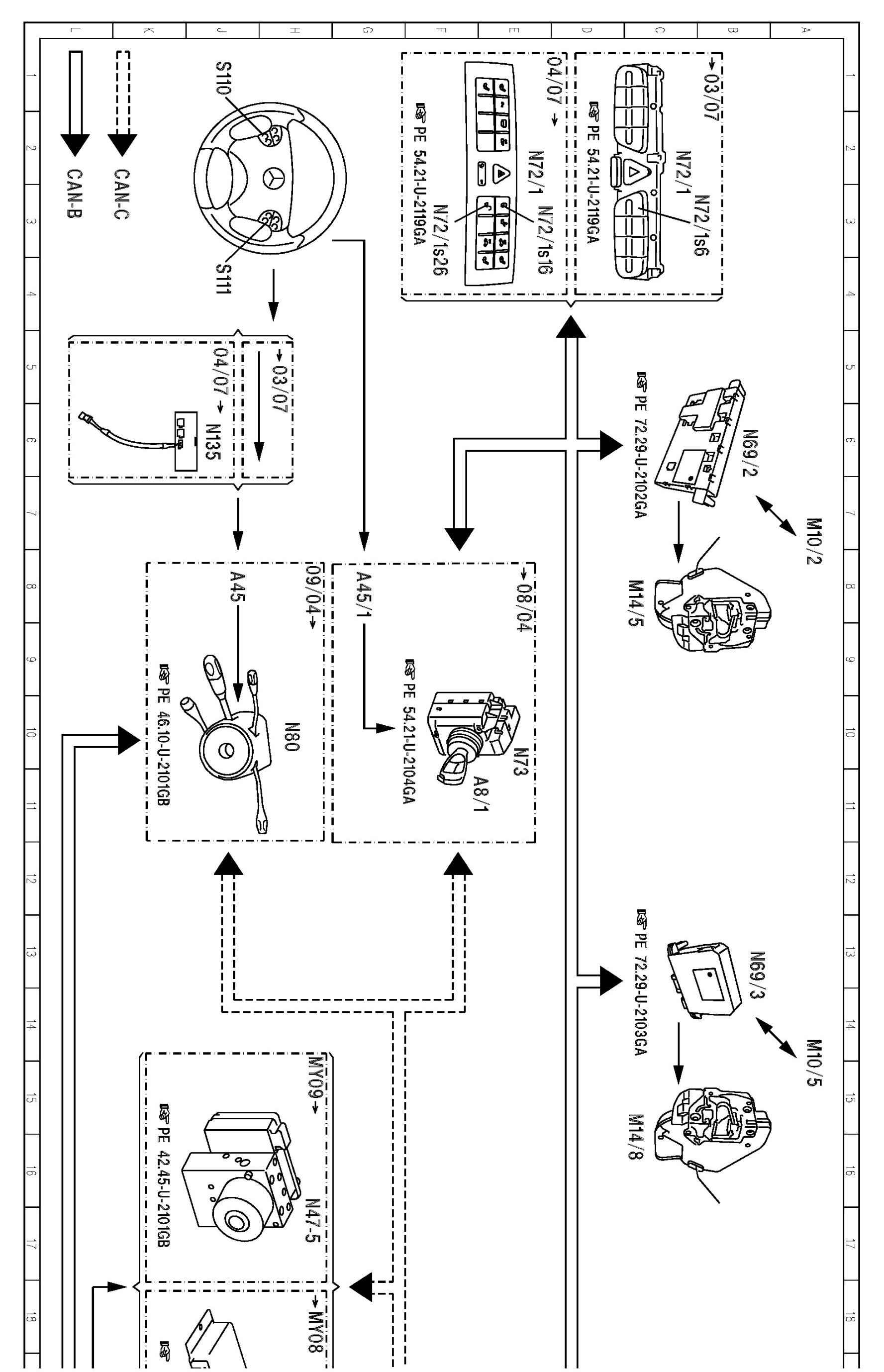 PE80.20-U-2050GA Function Schematic For Central Locking (CL) Electrical System