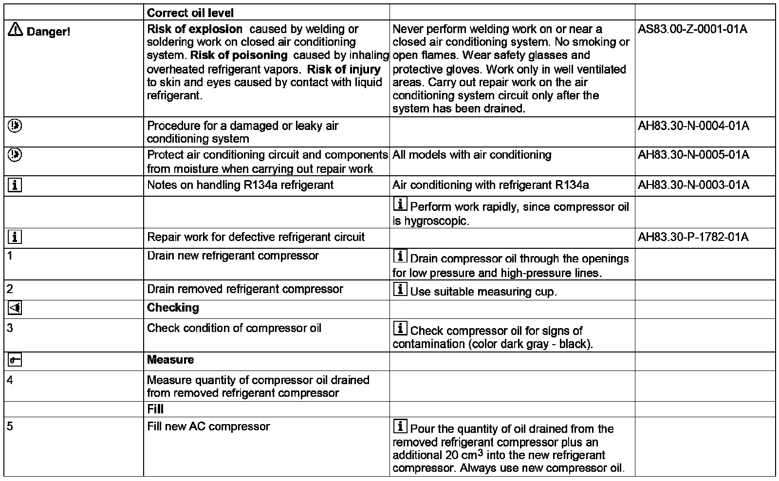 AR83.55-P-5250GM Correct Oil Level In Air Conditioning System When Replacing AC Compressor