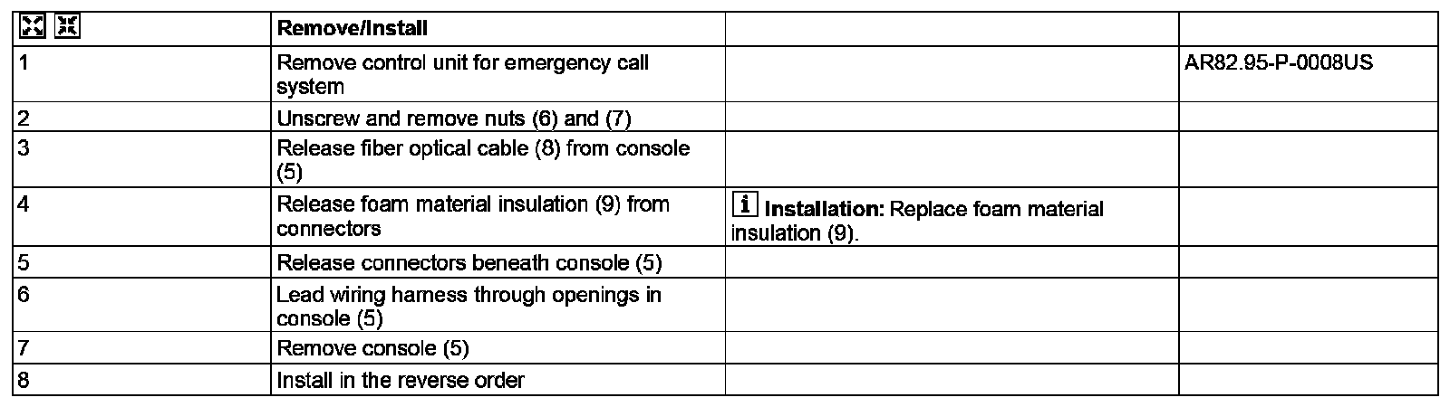 AR82.95-P-0014US Remove/Install Console For E-Call Emergency Call System Control Unit