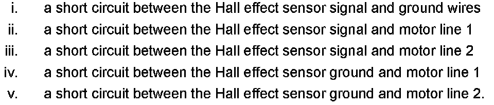 7. The electrical connectors for this function must be checked for loose contacts and the wires checked for short circuits. Disconnect the affected motor and Hall effect sensor. Check as shown.