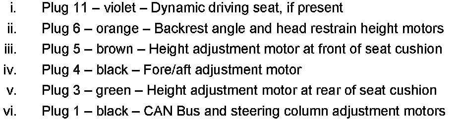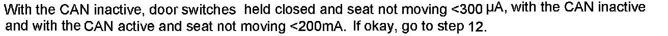 11. If the rest currents remain greater than the above values after all the above plugs have been removed, the ESA control module must be replaced. Normalize seat, verify seat functions normally and end test.