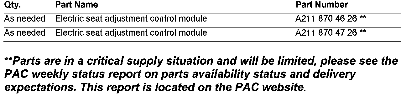 1. Check the part number of the ESA, the following only applies to part numbers A211 820 15 26, A211 820 16 26, A211 820 01 26, A211 820 02 26, A211 820 40 85 and A211 820 41 85.