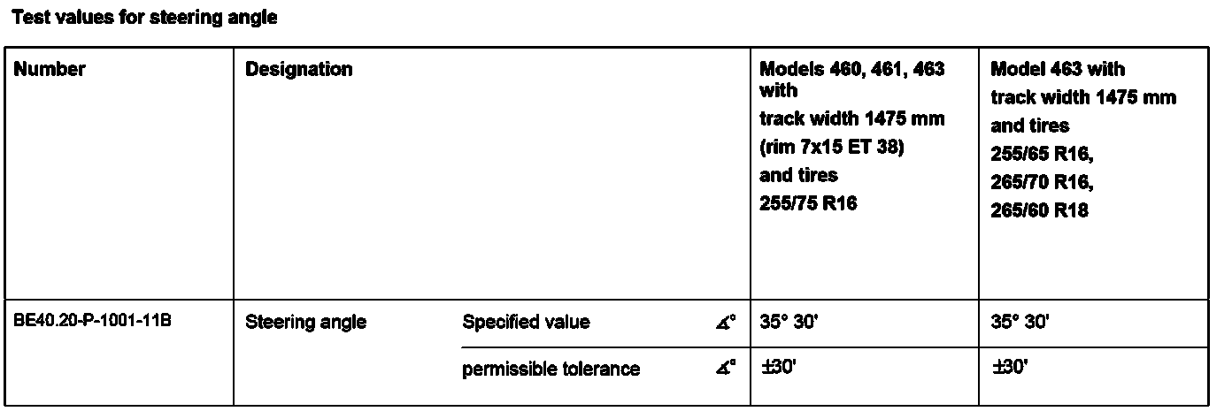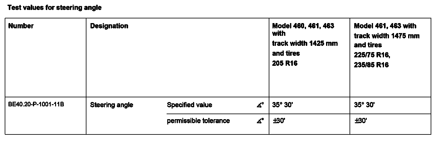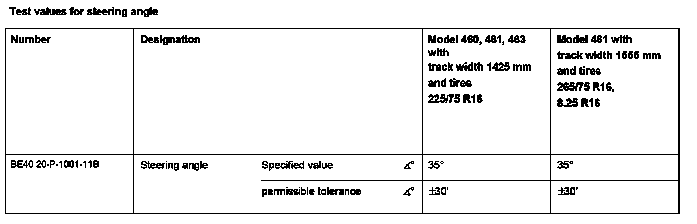 BE40.20-P-1001-11B Test Values For Steering Angle