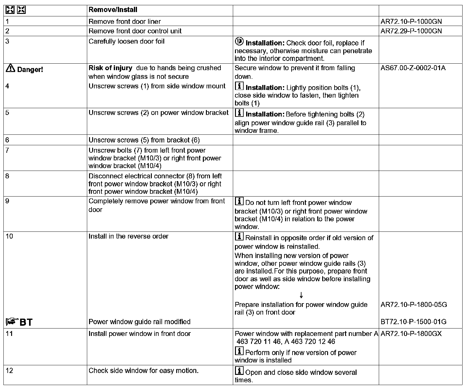 AR72.10-P-1800GN Remove/Install Front Door Power Window