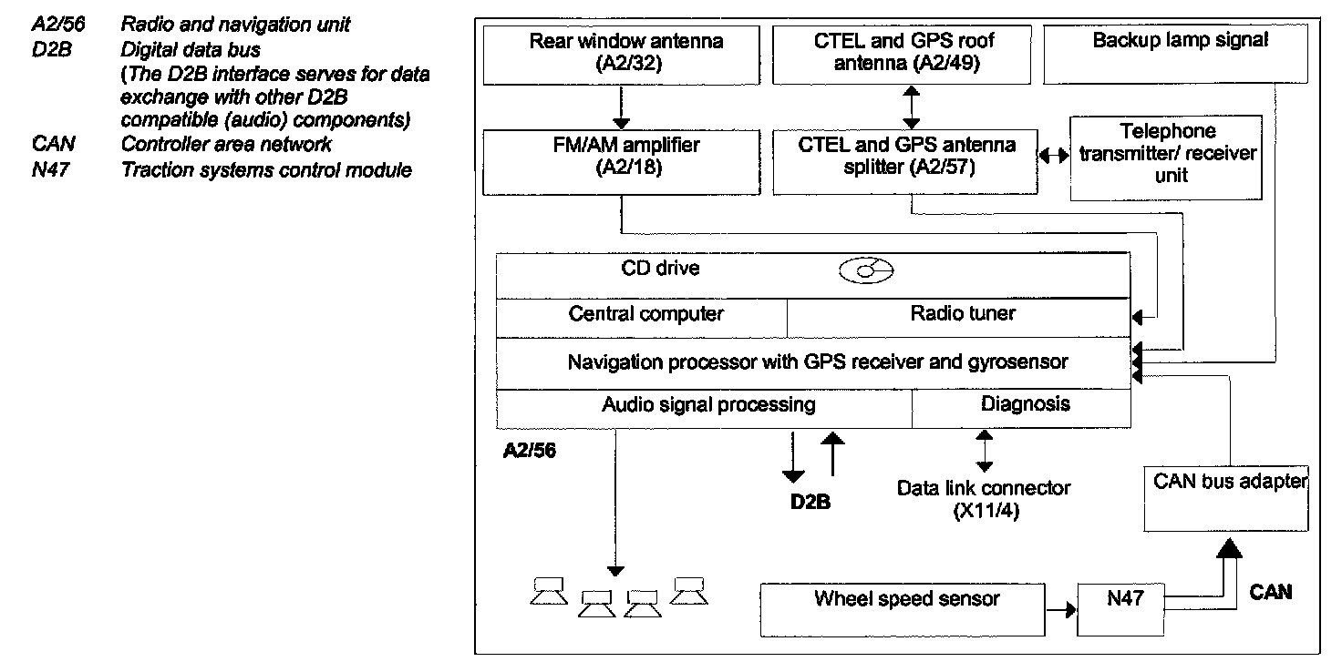 NOTE: The communication between the HHT and all other D2B components is accomplished over the radio and navigation unit (A2/56) diagnostic interface.