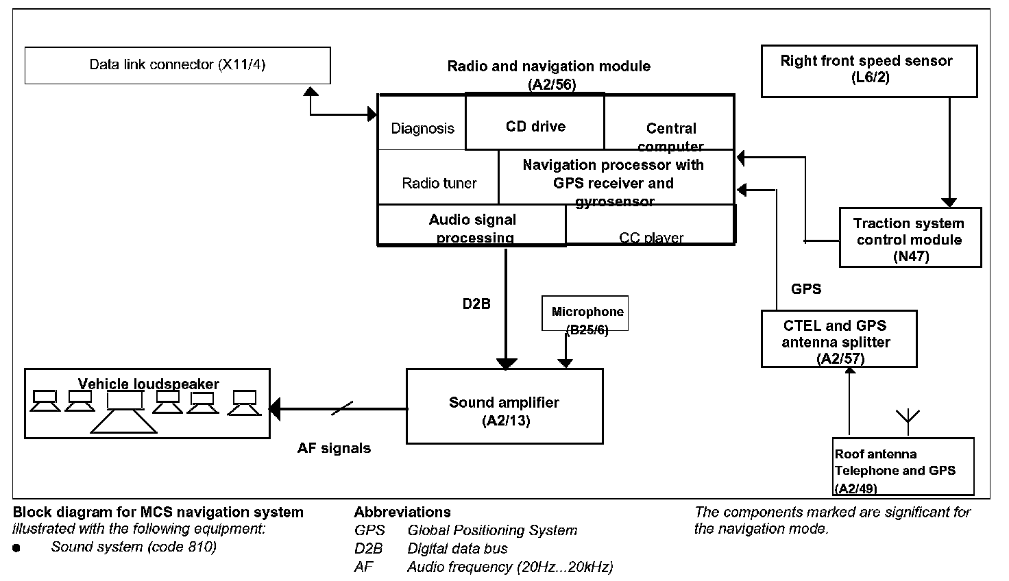 The navigation system (optional) is integrated into the radio and navigation module (A2/56).