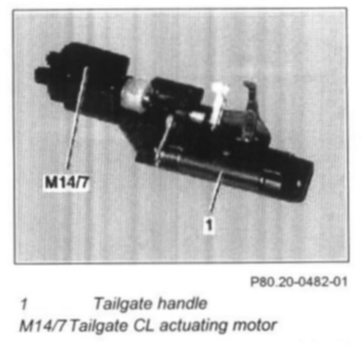 2 Remove tailgate CL actuating motor (M14/7) from tailgate handle (1)