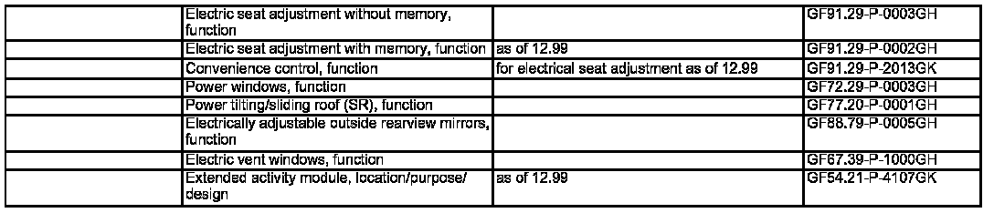 As of 12.99 the vehicle is equipped with its own convenience relay for seat adjustment (relay 1, F2k1). In addition the status of the convenience control via CAN is transmitted to the extended activity module (EAM, N10/1).