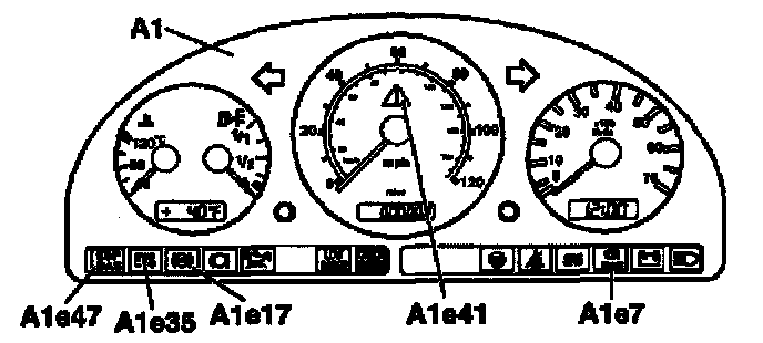 When the low brake fluid level/parking brake/brake force distribution indicator lamp (A1e7) is actuated, A1e17, A1e35 and A1e47 are always illuminated at the same time.