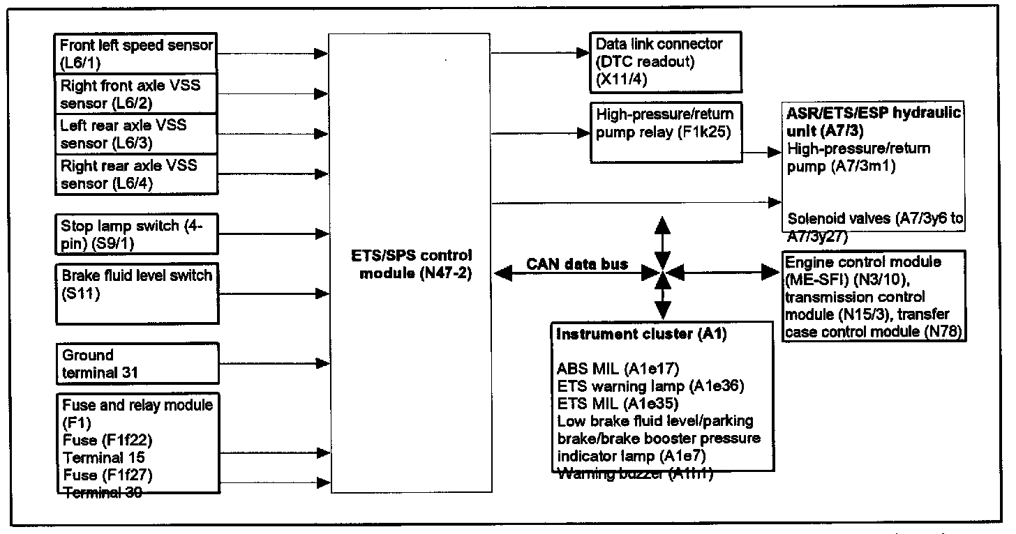 The corresponding functions in the ASR/ETS/ESP hydraulic unit (A 7/3) are controlled with the components of the electrical/electronic system.