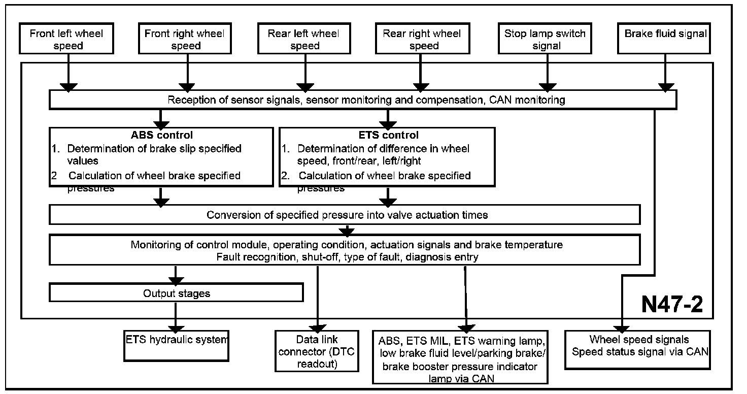 - Wheel speed output: For systems which require a wheel speed signal the ETS control module supplies the current wheel speed of each wheel.
