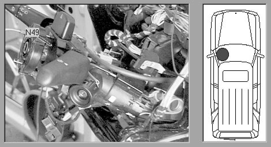 Passenger compartment, on steering column, beneath contact spiral.