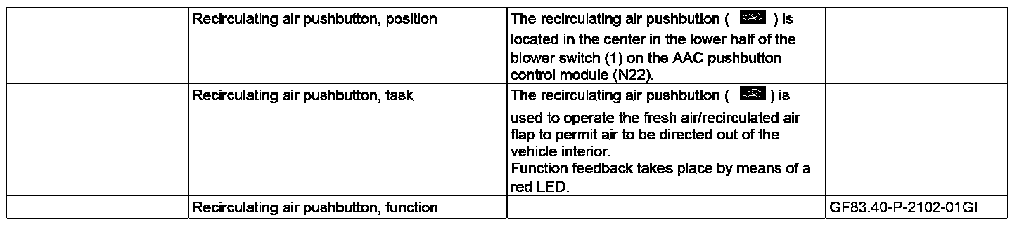 GF83.40-P-2145GI Recirculating Air Pushbutton, Location/Task/Function