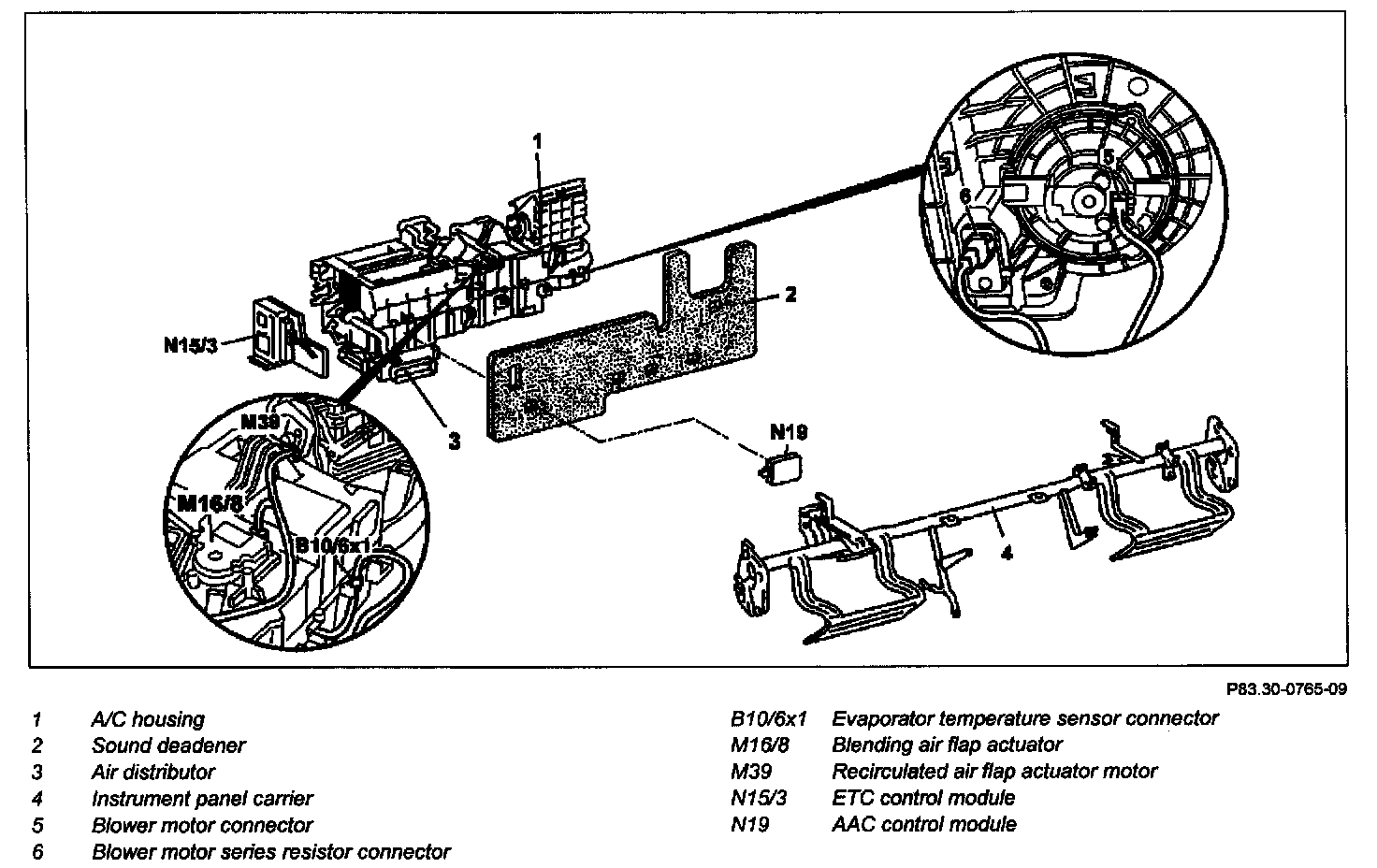 15 Disconnect connector from recirculated air flap actuator (M39)