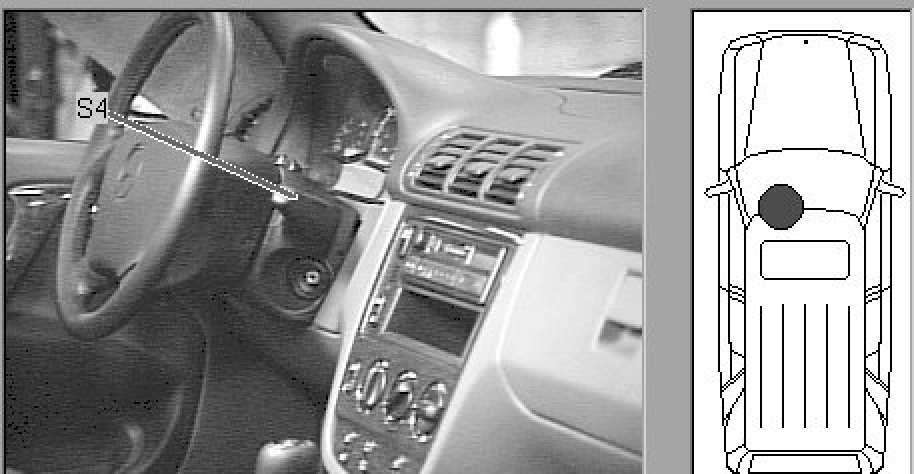 Passenger compartment, to right of steering wheel.
