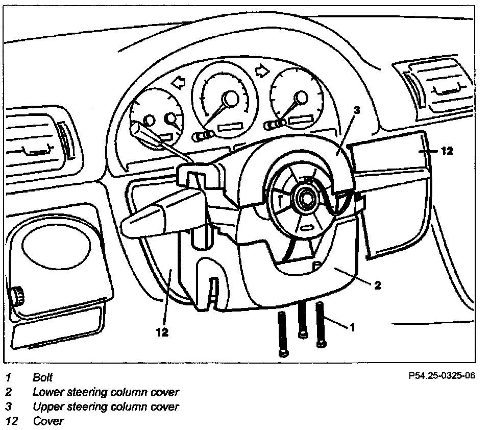 4 Unscrew screws (1) and remove lower steering column molding (2)