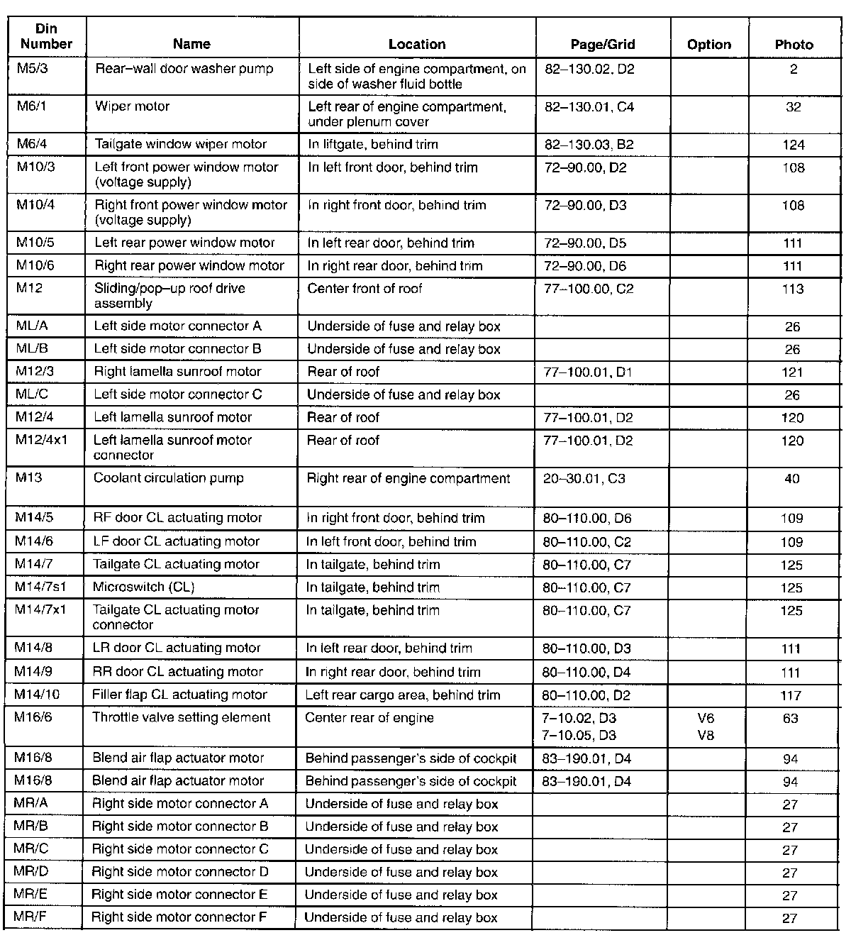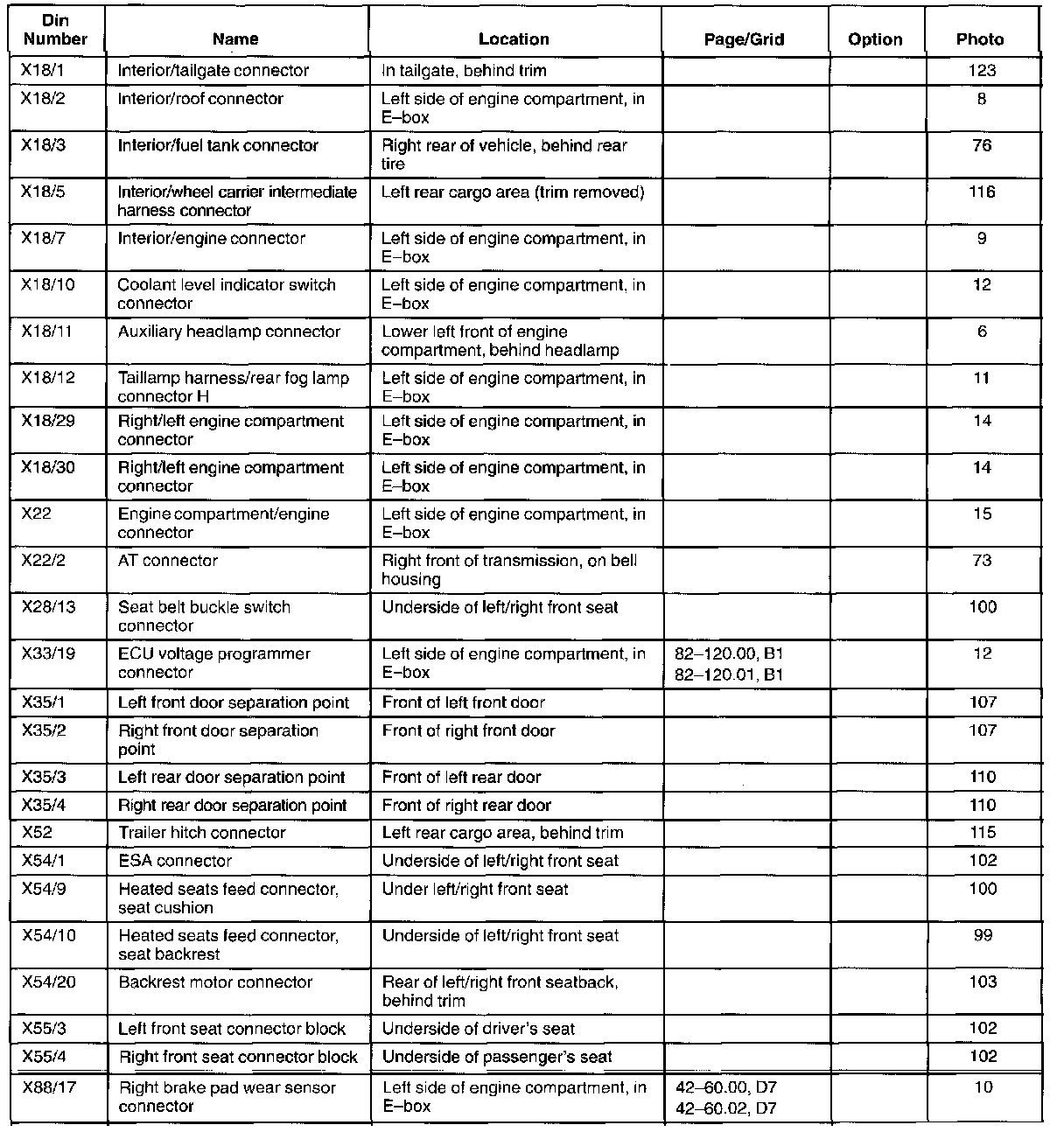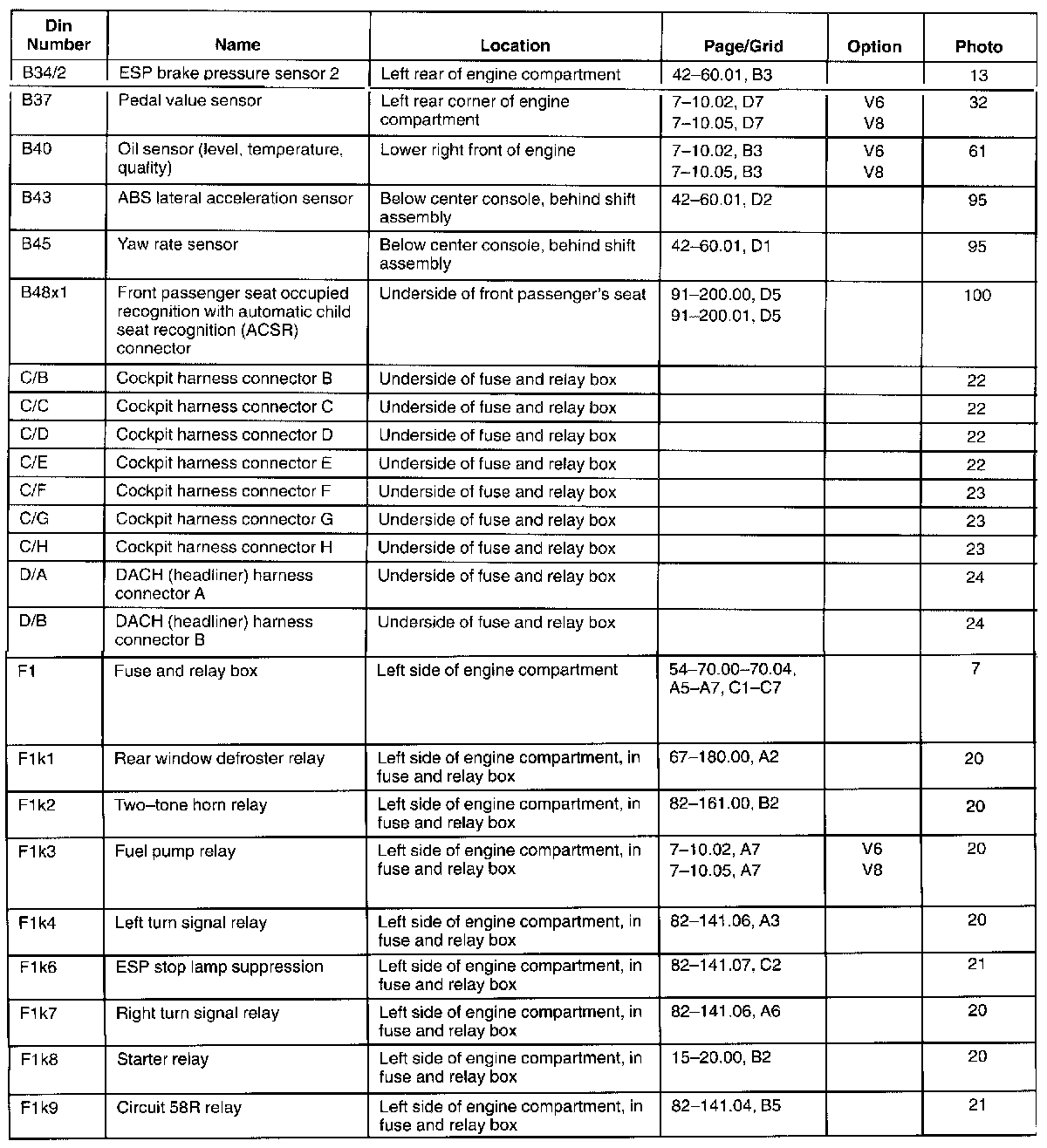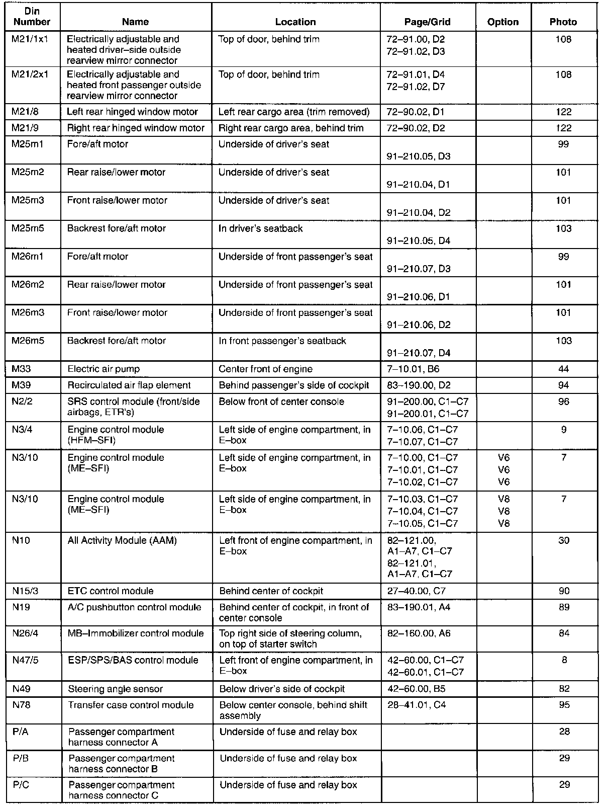 : This list contains components and connectors sorted alpha-numerically by the OE component/connector designation.