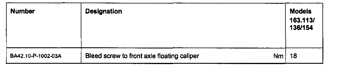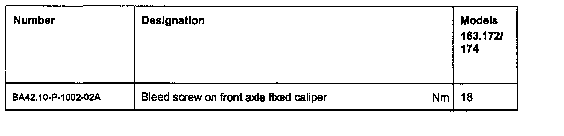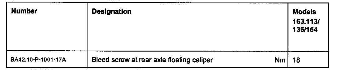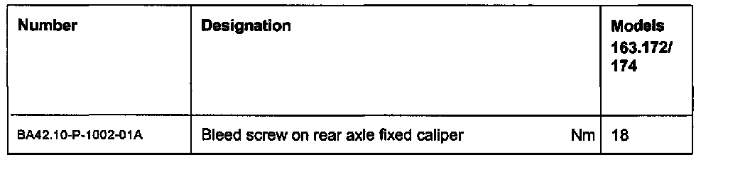 Specifications, Rear axle fixed caliper: