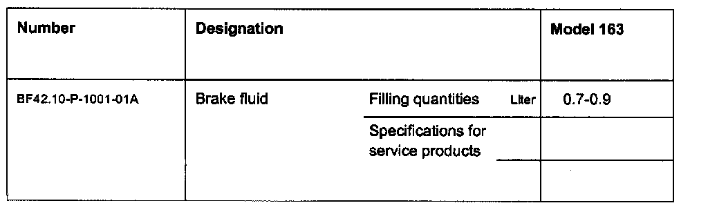 Specifications, Brake Fluid: